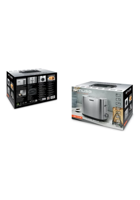 Muse MS-115 BS 2Θεσεων 1000W Inox Φρυγανιέρα (400511)