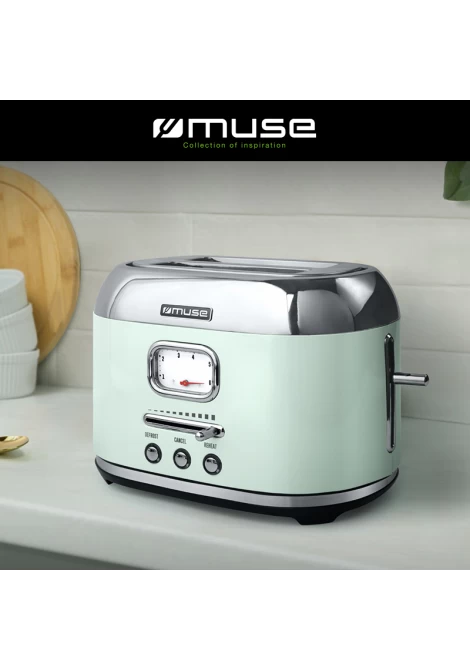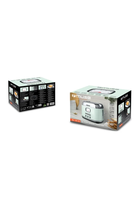 Muse MS-120 AG 2Θεσεων 1000W Inox/Πράσινο Φρυγανιέρα (400491)
