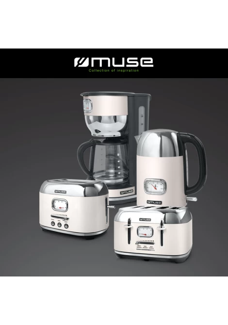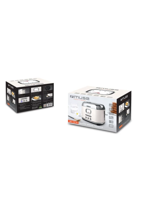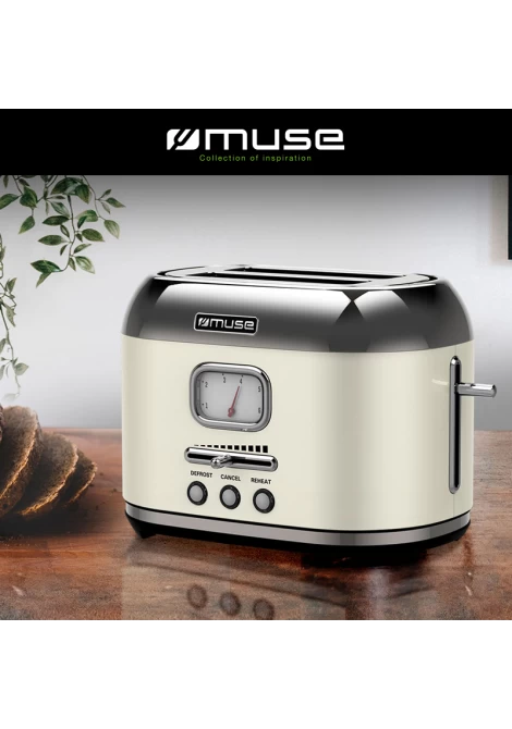 Muse MS-120 SC 2Θέσεων 1000W Inox/Κρέμ Φρυγανιέρα (400413)