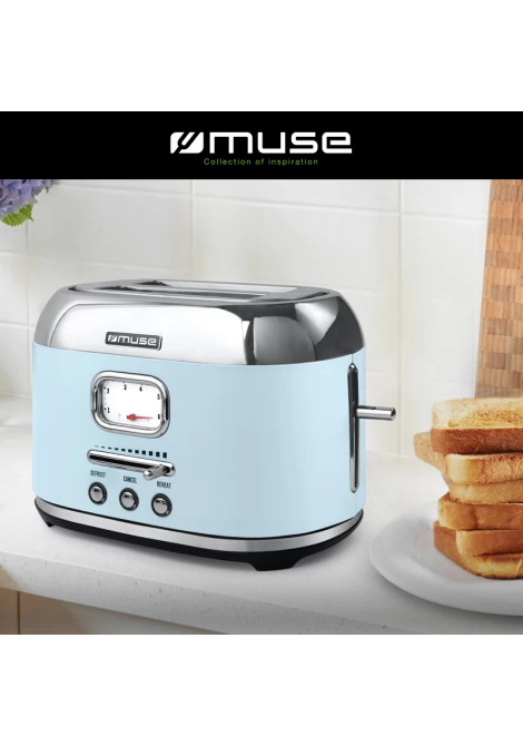 Muse MS-120 VB 2Θεσεων 1000W Inox/Γαλάζιο Φρυγανιέρα (400509)