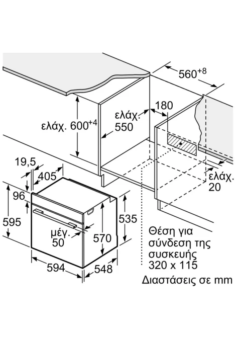 Διαστάσεις συσκευής (Υ x Π x Β) cm: 59,5 x 59,4 x 54,8