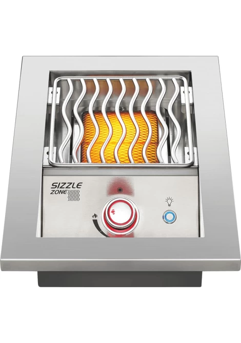 - Ο εντοιχιζόμενος, υπέρυθρος, Sizzle Zone πλευρικός καυστήρας της Napoleon μπορεί να συνδυαστεί με οποιαδήποτε εντοιχιζόμενη ψησταριά Napoleon. Είναι ιδανικός για τηγάνισμα, μπορεί να χρησιμοποιηθεί για τη δημιουργία συνοδευτικών, βράσιμο φαγητού ακόμη και θωράκισμα κρέατος, ταυτόχρονα με το κυρίως μπάρμπεκιου. Αυτός ο υπέρυθρος καυστήρας προσφέρει όσο χώρο χρειάζεστε για να θωρακίσετε τέλεια οποιαδήποτε κοπή κρέατος. Κατασκευασμένος από ανοξείδωτο ατσάλι για να αντέξει στο πέρασμα του χρόνου, κομψός και εύκολος στην εγκατάσταση θα αναβαθμίσει και θα ολοκληρώσει την εξωτερική σας κουζίνα. Είναι εξοπλισμένος με ανοξείδωτες σχάρες 7,5mm με το χαρακτηριστικό wave σχήμα της Napoleon για να μην υπάρχουν απώλειες φαγητού στις λεπτές κοπές. Με το μοναδικό Jetfire σύστημα ανάφλεξης της Napoleon, ανάβει με το ένα χέρι. Τέλος έχει τα εντυπωσιακά εργονομικά φωτιζόμενα μπλε κουμπιά με Safety Glow System που μας υπενθυμίζει πότε είναι αναμμένος καθώς γίνονται κόκκινα.