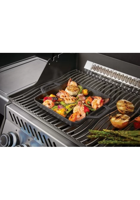 Αναβάθμισε την εμπειρία σου στο μπάρμπεκιου με αυτό το μαντεμένιο σχαροτήγανο 25x25 εκ. Napoleon.Κατάλληλο για ψήσιμο κρεάτων και λαχανικών, διαθέτει επιφάνεια με πορσελάνινη επικάλυψη που είναι εύκολη στη συντήρηση .Προσφέρει ανθεκτικότητα και απόλυτο έλεγχο στη θερμότητα, κάνοντάς το ιδανικό για κρέας και λαχανικά. Με άνετες λαβές και επιφάνεια που διατηρεί τη θερμότητα, είναι ό,τι χρειάζεσαι για να μαγειρέψεις σαν επαγγελματίας.Ιδανικό για χρήση τόσο στους πλευρικούς καυστήρες όσο και απευθείας στις σχάρες της ψησταριάς σου ,δημιουργεί τα χαρακτηριστικά Napoleon σημάδια ψησίματος σε wave σχήμα.