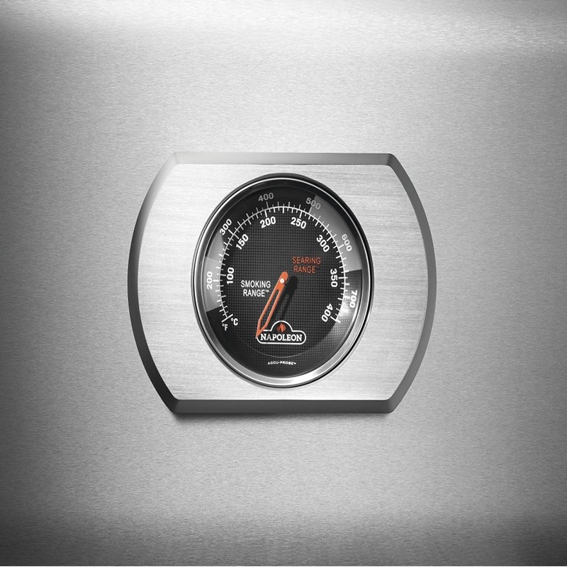 Λάβετε τον απόλυτο έλεγχο της θερμοκρασίας στο μπάρμπεκιου με το θερμόμετρο υψηλής ακρίβειας που βρίσκεται ενσωματωμένο στο καπάκι της Napoleon Rogue.