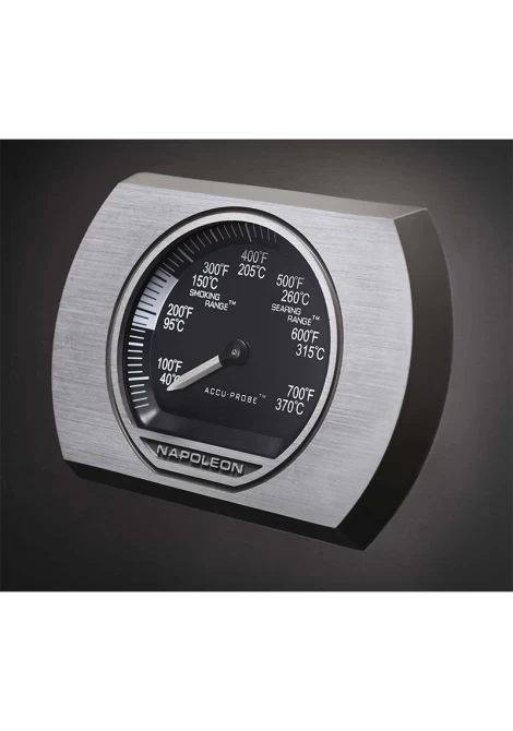 Λάβετε τον απόλυτο έλεγχο της θερμοκρασίας στο μπάρμπεκιου με το θερμόμετρο υψηλής ακρίβειας που βρίσκεται ενσωματωμένο σε κάθε καπάκι των μοντέλων Napoleon Prestige PRO.