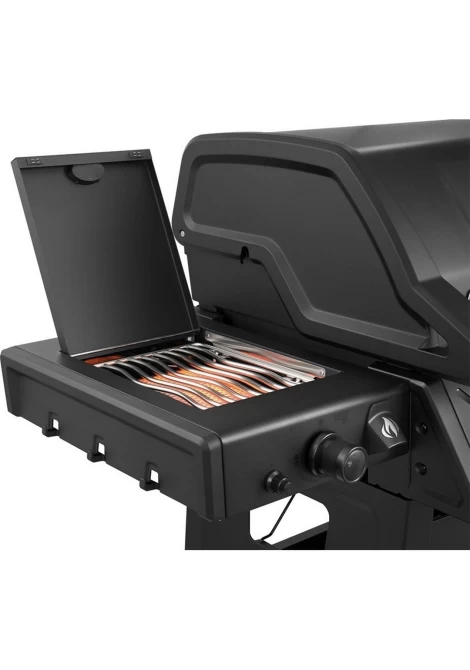 Εξοπλισμένη με πλαϊνό καυστήρα υπέρυθρης ακτινοβολίας SIZZLE ZONE®, σας επιτρέπει να πετυχαίνετε άψογο θωράκισμα σε ελάχιστα δευτερόλεπτα ενώ το σύστημα άμεσης ανάφλεξης JETFIRE™ εξασφαλίζει άμεση εκκίνηση με το πάτημα ενός κουμπιού. Οι τρεις ανοξείδωτοι καυστήρες παρέχουν σταθερή, ομοιόμορφη θερμοκρασία, και το θερμόμετρο ACCU-PROBE™ προσφέρει απόλυτο έλεγχο. Οι μαντεμένιες σχάρες WAVE™ διατηρούν τη θερμοκρασία σταθερή σε όλη την επιφάνεια και προσφέρουν τέλεια σημάδια ψησίματος.