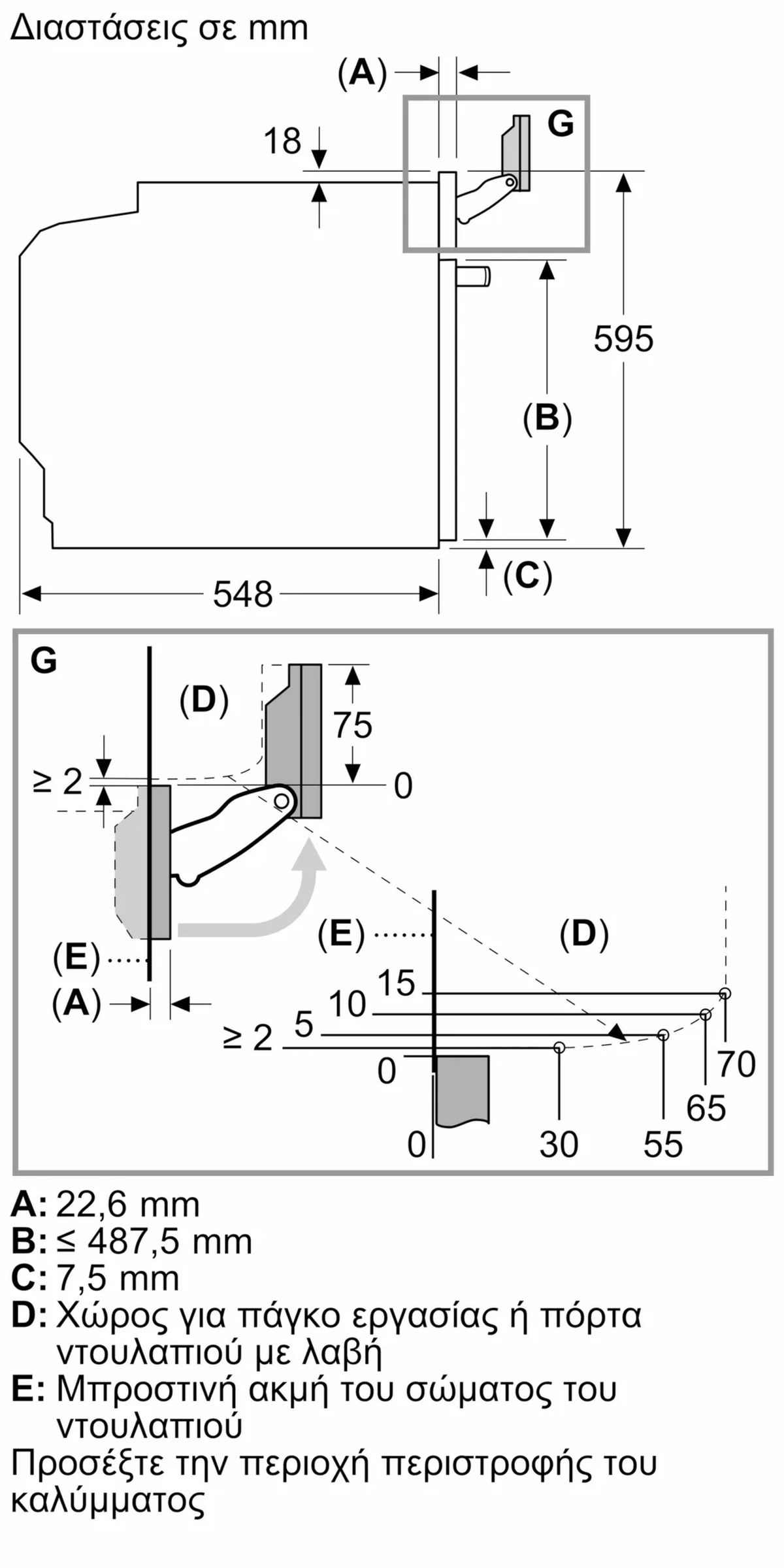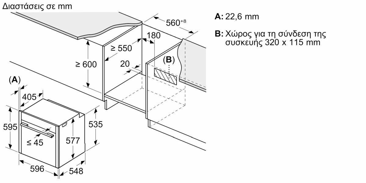 Διαστάσεις συσκευής (ΥxΠxΒ): 595 mm x 596 mm x 548 mm