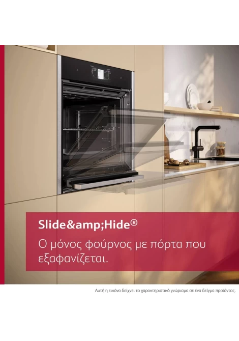 Δεν είναι κάποιο μαγικό, είναι απλά το Slide & Hide®, η πόρτα που εξαφανίζεται κάτω από τον φούρνο.Η πόρτα Slide & Hide® εξαφανίζεται απαλά κάτω από τον φούρνο, για να μπορείτε να αλείψετε τα ψητά σας και να δοκιμάσετε εύκολα τα φαγητά σας.Με αυτόν τον τρόπο, μπορείτε να ελέγξετε πιο εύκολα το λαχταριστό γεύμα που ετοιμάζετε.Ακόμα και όταν η πόρτα ανασύρεται κάτω από το φούρνο, είναι εξίσου εντυπωσιακό.Απλώς τραβήξτε προς τα πάνω την περιστρεφόμενη λαβή, σε οποιαδήποτε θέση, για να επαναφέρετε την πόρτα στη θέση της.