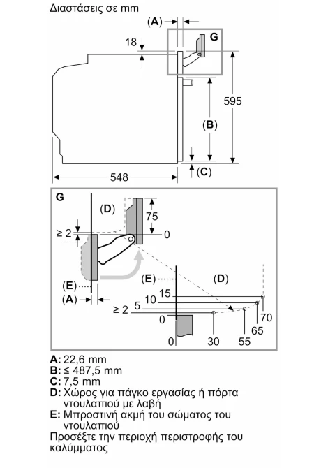 Διαστάσεις συσκευής (ΥxΠxΒ): 595 mm x 596 mm x 548 mm