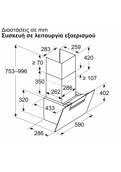 Διαστάσεις Λειτουργία εξαγωγής (ΥxΠxΒ): 883-1.126 x 590 x 433 mm