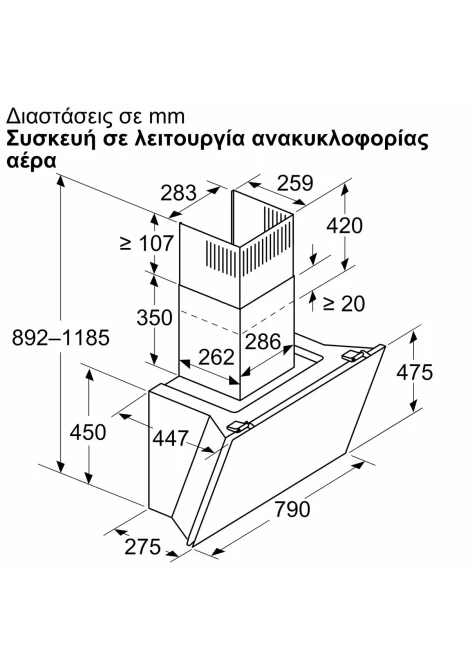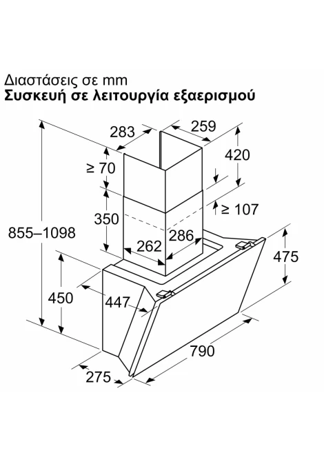 Διαστάσεις Λειτουργία εξαγωγής (ΥxΠxΒ): 855-1.098 x 790 x 447 mm