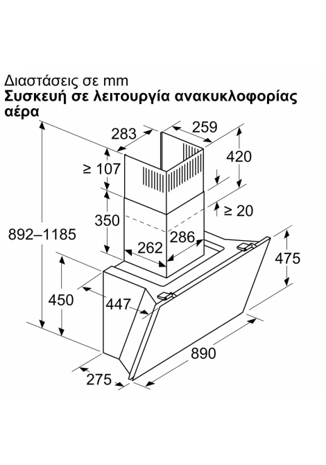 Διαστάσεις Λειτουργία εξαγωγής (ΥxΠxΒ): 855-1098 x 890 x 447 mm