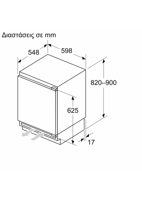 Υποτοιχιζόμενο μονόπορτο ψυγείο με εσωτερική κατάψυξη,
