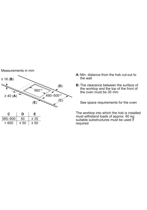 Διαστάσεις εντοιχισμού (ΥxΠxΒ mm) : 51 x 560 x (490 - 500)