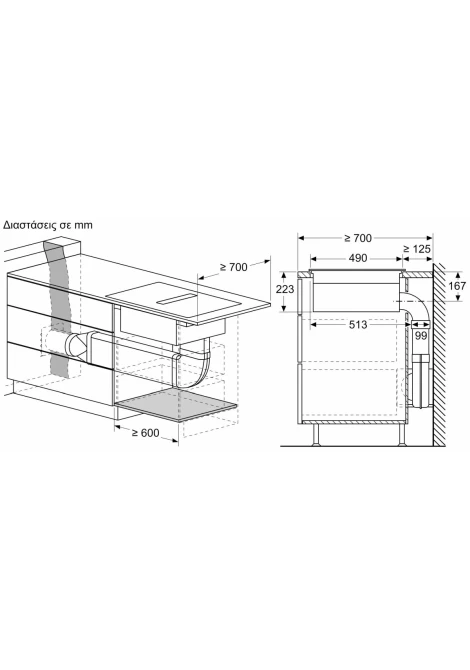 2 ευέλικτες επαγωγικές ζώνες μαγειρέματος Flex - Απορροφητική Ισχύς (Max): 595m³/h