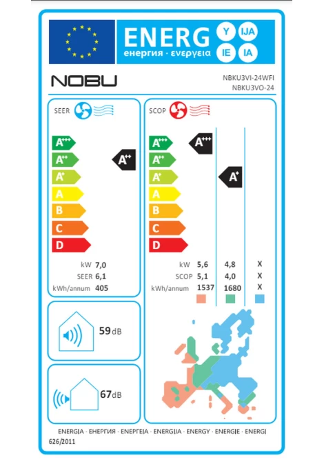 Nobu NBKU3VI-24WFI/ NBKU3VO-24 Κλιματιστικό Τοίχου