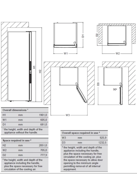 | Διαστάσεις συσκευής (ΥxΠxΒ) - Βάθος με ανοιχτή πόρτα | 190,1 x 60,5 x 68,1εκ. |