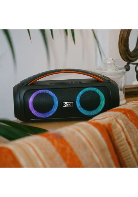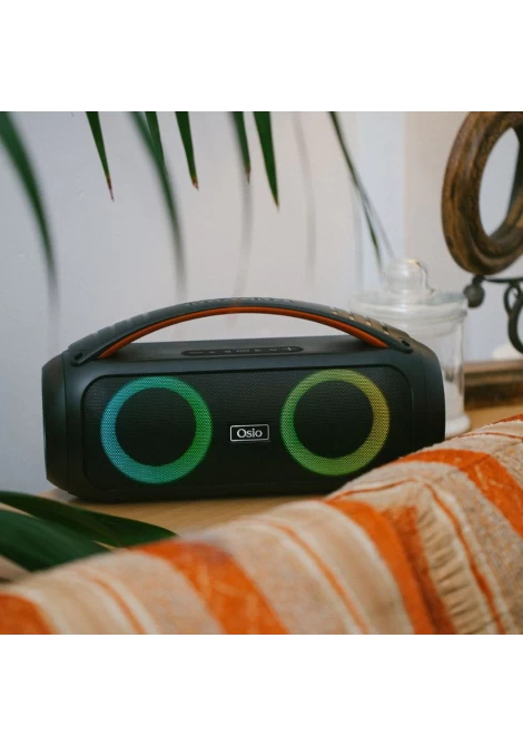 Το OBT-8010 της Osio είναι το φορητό ηχείο που θα σας εξασφαλίσει την απόλυτη μουσική εμπειρία! Μπορείτε να το μεταφέρετε εύκολα από τη βολική λαβή και να το παίρνετε άφοβα ακόμα και στην παραλία, καθώς είναι ανθεκτικό στο νερό με πιστοποίηση IPX5. Πρόκειται για ένα ισχυρό ηχείο με ισχύ 50W και USB για αναπαραγωγή μουσικής με αυτονομία περισσότερες από 5 ώρες, χάρη στην μεγάλη μπαταρία 4500mAh. Μπορεί να συνδεθεί με συσκευή αναπαραγωγής μουσικής, όπως τηλεόραση υπολογιστής ή κινητό μέσα από την είσοδο Aux-In. Θέλετε να οργανώσετε ένα αξέχαστο karaoke party; Αυτό είναι το ιδανικό ηχείο, καθώς διαθέτει πολύχρωμα φώτα LED που θα δώσουν τον ρυθμό και ένα ενσύρματο μικρόφωνο για ευκρινή και πιστή καταγραφή της φωνής. Είναι αρκετά δυνατό για εσωτερικούς και εξωτερικούς χώρους και παράγει καθαρό ήχο σε όλες τις εντάσεις. Διαθέτει λειτουργία TWS, ώστε να μπορείτε να συνδέσετε επιπλέον ηχεία για ακόμα μεγαλύτερη ένταση ήχου και ραδιόφωνο FM.