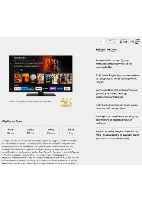 HDR10/HLG - Dolby Vision - Surround - Ηχεία 24W (12W x 2)