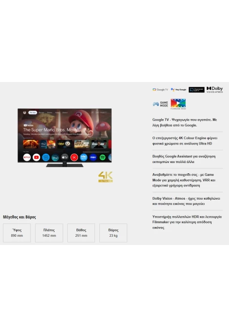 Με εξαιρετικά ζωντανά χρώματα, πιο έντονες αντιθέσεις και πιο πλούσιες λεπτομέρειες, το Dolby Vision® σας προσφέρει μαγευτική ποιότητα εικόνας. Το Filmmaker Mode ρυθμίζει την χρωματική παλέτα, την αντίθεση, την αναλογία διαστάσεων και τον ρυθμό καρέ της ταινίας όπως ο δημιουργός είχε προβλέψει. Μια υπέροχη εικόνα είναι σημαντική, αλλά είναι πολύ πιο συναρπαστικό όταν προσθέτεις υπέροχο ήχο. Η επεξεργασία ήχου μας, με την πρόσθετη καθηλωτική τεχνολογία Dolby Atmos® θα σας συνεπάρει.