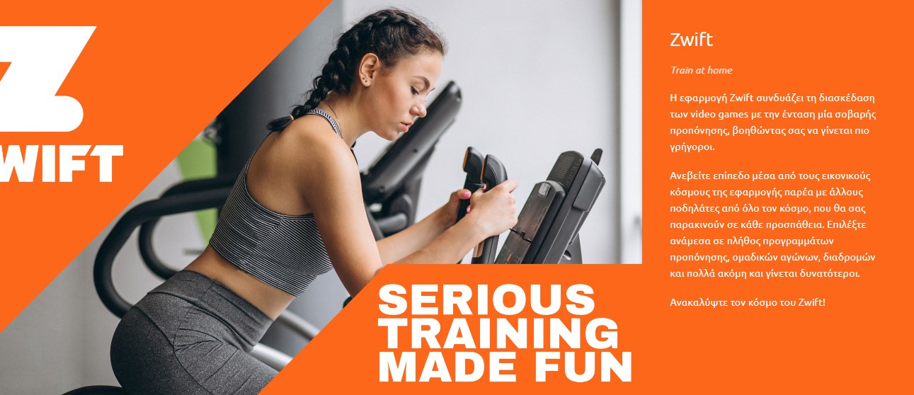 μέσα από τις δημοφιλείς εφαρμογές Zwift και Kinomap, το Καθιστό Ποδήλατο Pegasus® B15 αποτελεί ιδανικό συνδυασμό δυνατοτήτων, κομψότητας και απόδοσης!