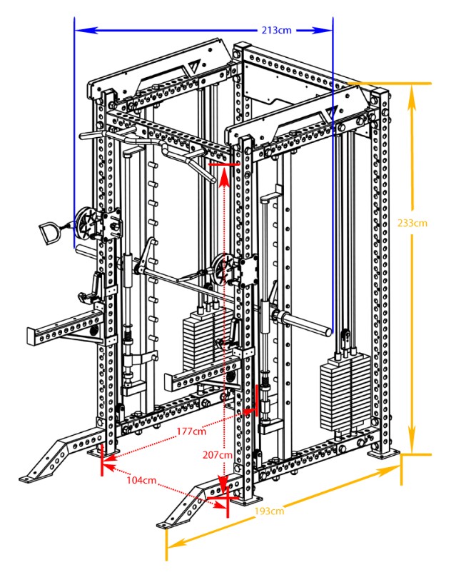 Διαθέτει στιβαρό σύστημα ολίσθησης μπάρας (Smith) με υψηλής ποιότητας γραμμικά ρουλεμάν επαγγελματικού τύπου, για μεγαλύτερη ευελιξία και ασφάλεια στις άρσεις βαρών. Με εντυπωσιακή αντοχή βάρους έως 300kg. Βάρος συστήματος 25kg.