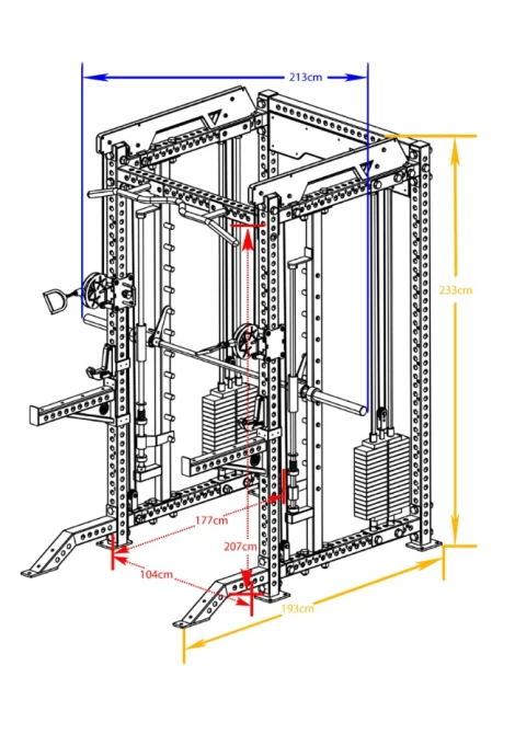 Διαθέτοντας καθοδηγούμενη μπάρα Smith με stops ασφαλείας, παρέχει ελεγχόμενες κινήσεις, μειώνοντας τον κίνδυνο τραυματισμών, ενισχύοντας παράλληλα την αποτελεσματικότητα της προπόνησης. Παράλληλα το σύστημα διπλής τροχαλίας συρματόσχοινων επιτρέπει ένα πλήρες εύρος κίνησης.