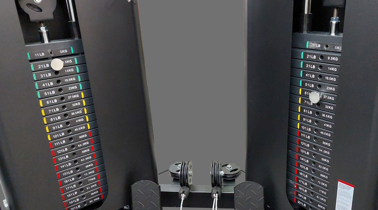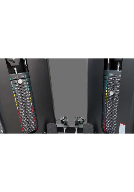 Η αναλογία στις τροχαλίες είναι 2:1, που σημαίνει ότι το μέγιστο πραγματικό βάρος σε κάθε πλευρά είναι από 45kg. Διαθέτει χαμηλές τροχαλίες με υποπόδια σταθεροποίησης, για ασκήσεις από καθιστή θέση, χρησιμοποιώντας και τις 2 στοίβες πραγματικού βάρους 90.5Kg.