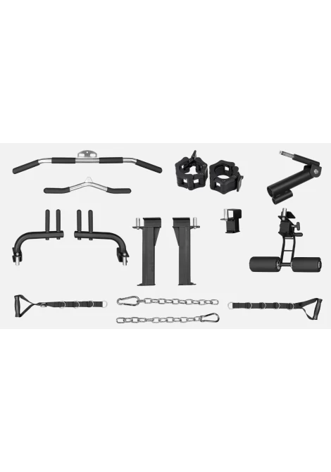 Αυτή η στιβαρή μονάδα προπόνησης ενσωματώνει μηχανή Smith, σύστημα Crossover, χαμηλή κωπηλατική, μονόζυγό πολλαπλών λαβών, δίζυγο, τροχαλία πλάτης, Core Trainer & Κλωβό Δύναμης, που σε συνδυασμό με ένα ρυθμιζόμενο πάγκο, επιτρέπει εκτέλεση πλήθους ασκήσεων με ελεύθερα βάρη.