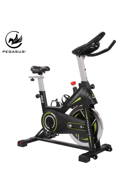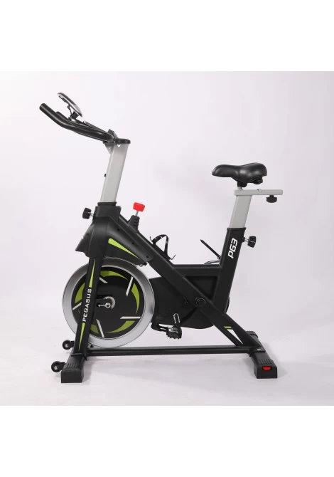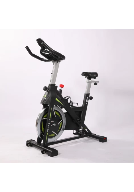 Το Spin Bike Pegasus® "PG3" είναι ένα πολύ εύχρηστο ποδήλατο με σύστημα κίνησης ιμάντα και με ρύθμιση εναλλαγής αντίστασης μέσω μαγνητών για πλήρως αθόρυβη λειτουργία και ελάχιστες απαιτήσεις συντήρησης. Διαθέτει λειτουργία κίνησης που διασφαλίζει ομαλότητα και ισορροπία, ενώ είναι εξοπλισμένο με δίσκο 10kg και κατασκευασμένο από ατσάλι βαρέως τύπου.