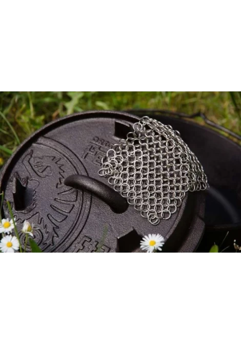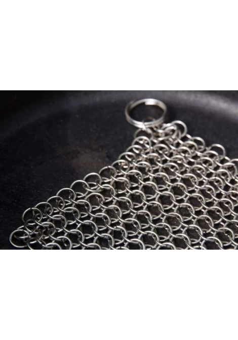 Με αυτό το υψηλής ποιότητας, ανθεκτικό εργαλείο απο ανοξείδωτο ατσάλι, ο καθαρισμός του μαντεμένιου σκεύους σας απο καμένα λίπη θα γίνει παιχνίδι. Με την αλυσίδα καθαρισμού, μπορείτε να αφαιρέσετε εύκολα τα υπολείμματα φαγητού, χωρίς να βλάψετε την επιφάνεια, προστατεύοντας την πολύτιμη επίστρωση του σκεύους. Η, ειδικά σχεδιασμένη, πλέξη απο δακτυλίους αφαιρεί απαλά τα λίπη, χωρίς να χαράζει.