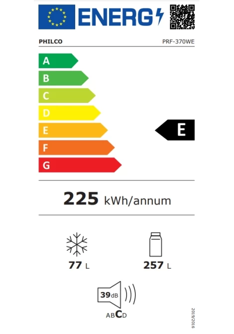 Ενεργειακή κλάση E | Στάθμη θορύβου (dB) 43,