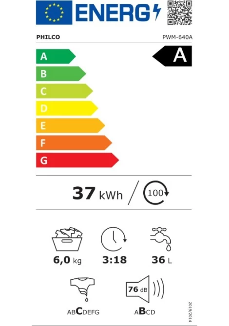 Philco PWM 640A Πλυντήριο Ρούχων 6kg