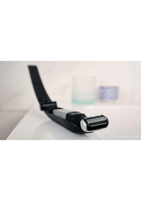 - Προσφέρει άνετο και βαθύ αποτέλεσμα μέσα ή έξω από το ντους. Το σύστημα περιποίησης σώματος είναι πλήρως αδιάβροχο. Έτσι, μπορείτε να καθαρίσετε τη συσκευή απλώς ξεπλένοντάς την, μόλις τελειώσετε. Για πιο μακριές τρίχες, η απόδοση τριμαρίσματος μπορεί να είναι καλύτερη σε στεγνή επιδερμίδα.