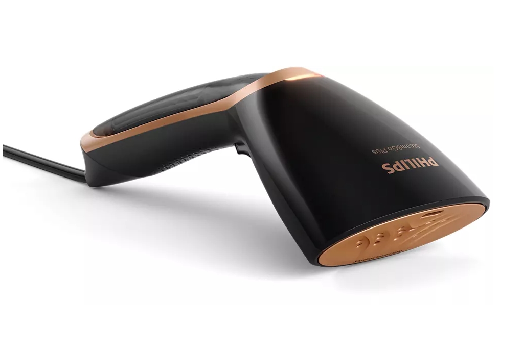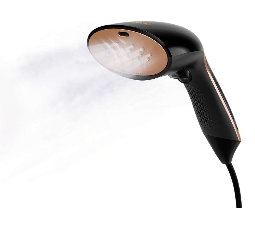 - Το σύστημα ατμού χειρός είναι εργονομικά σχεδιασμένο ώστε να είναι ελαφρύ, μικρό και άνετο στη χρήση. Απλώς πιέστε το κουμπί και δείτε τις τσακίσεις και τις ζάρες να εξαφανίζονται.