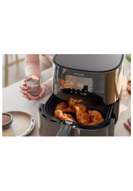 Το Philips Essential Airfryer χρησιμοποιεί ζεστό αέρα για να μαγειρεύει τα αγαπημένα σας φαγητά σε τραγανή τελειότητα, με έως και 90% λιγότερα λιπαρά.