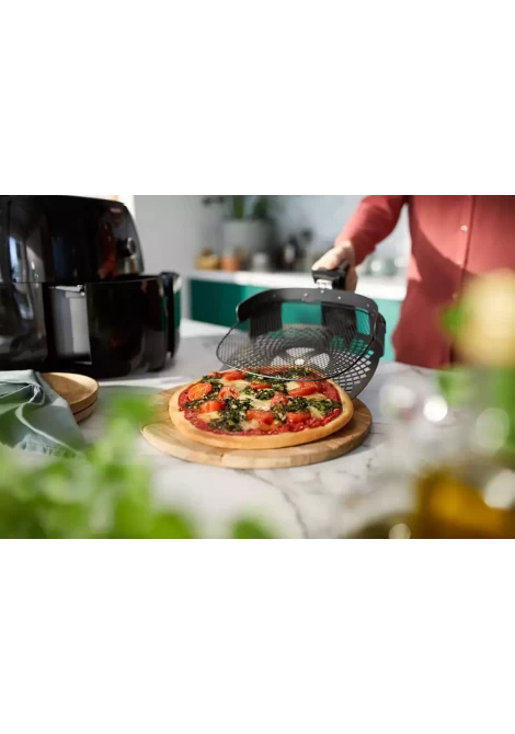 Τώρα μπορείτε να χρησιμοποιήσετε το Airfryer για να ψήσετε την αγαπημένη σας πίτσα. Με το XXL μεγέθους ταψί για πίτσα, μπορείτε να ψήνετε σπιτική πίτσα ή ακόμη και έτοιμες κατεψυγμένες πίτσες, διαμέτρου 26 cm, σε μόλις 8 λεπτά.
