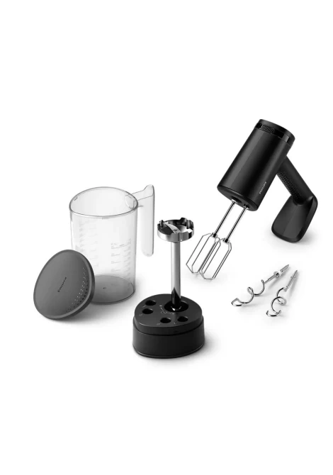 Το μίξερ χειρός 2 σε 1 αναμειγνύει ή ζυμώνει ακόμα και σκληρές ζύμες μέσα σε λίγα λεπτά. Φτάστε σε κάθε γωνία ακόμα και των βαθύτερων μπολ, ελαχιστοποιήστε τα πιτσιλίσματα και εξοικονομήστε χρόνο στο καθάρισμα, χάρη στην ειδική σχεδίαση για μεγάλη ακτίνα δράσης και τη λειτουργία ήπιας εκκίνησης. Περιλαμβάνει εξάρτημα μπλέντερ και δοχείο αποθήκευσης.