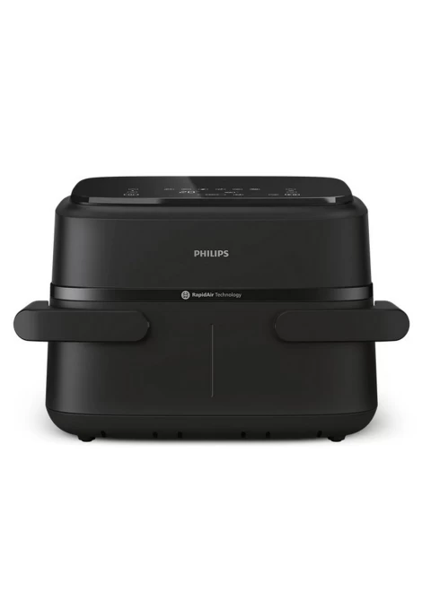 Το μικρό μας Airfryer με διπλό καλάθι εξοικονομεί 40% χώρο. Το συρτάρι περιλαμβάνει δύο ισχυρές οριζόντιες λαβές για ασφαλή και άνετο χειρισμό, ακόμη και όταν είναι γεμάτο.