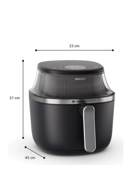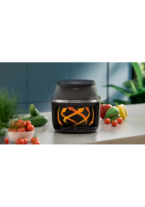 Η κατοχυρωμένη με δίπλωμα ευρεσιτεχνίας τεχνολογία RapidAir Plus με μοναδικό σχεδιασμό σε σχήμα αστεριού κυκλοφορεί ζεστό αέρα γύρω και μέσα από το φαγητό με ταχύτερη ροή αέρα, εξασφαλίζοντας ομοιόμορφο μαγείρεμα μέσα και έξω για νόστιμα σπιτικά γεύματα σε 30% λιγότερο χρόνο.