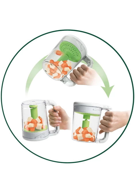 Παρασκευαστής υγιεινής βρεφικής τροφής 2 σε 1, κατάλληλος για την προετοιμασία υγιεινών, σπιτικών, βρεφικών γευμάτων, καθώς λειτουργεί σαν ατμομάγειρας και μπλέντερ. Διαθέτει ειδοποίηση ολοκλήρωσης μαγειρέματος. Περιέχει κύπελλο μέτρησης, σπάτουλα και βιβλίο συνταγών.