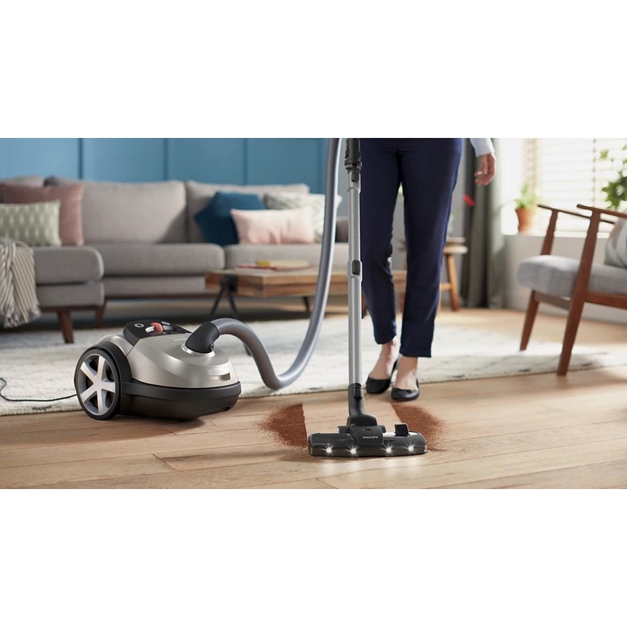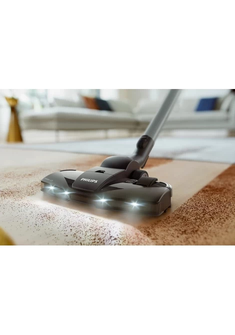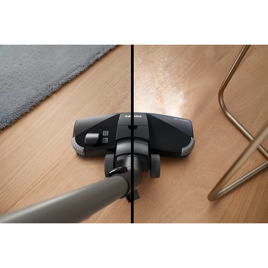 Η πιο ισχυρή ηλεκτρική σκούπα με σακούλα Philips. Η TriActive+ LED αποκαλύπτει την κρυμμένη σκόνη για σχολαστικό καθάρισμα. Απολαύστε τέλεια καθαρά δάπεδα με τη σειρά Philips Bagged Vacuum Performer LED 8000. Το ακροφύσιο TriActive+ LED με προηγμένο φωτισμό δαπέδου αποκαλύπτει τη λεπτή σκόνη, ενώ ένας