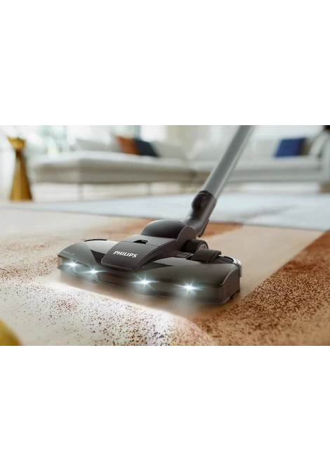 Απολαύστε ανώτερη απόδοση καθαρισμού χάρη στον συνδυασμό της υψηλής απορροφητικής ισχύος και του πέλματος TriActive+LED, που σας επιτρέπει να απομακρύνετε το 99,9% της ψιλής σκόνης**.