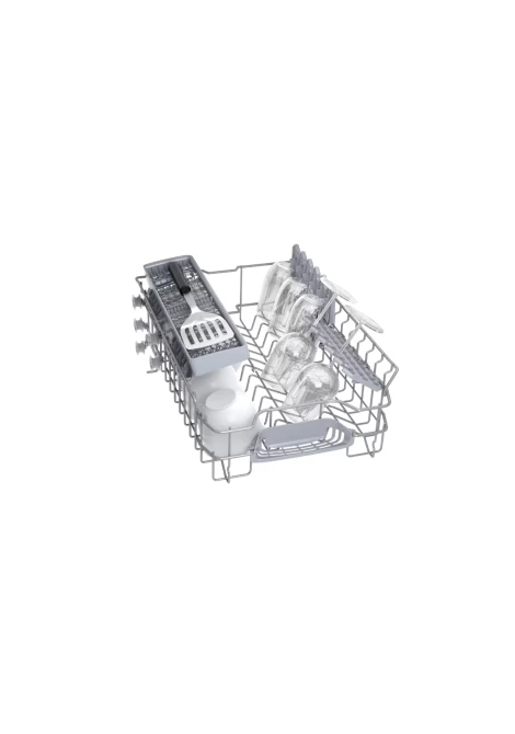 Με τους διπλούς βραχίονες ψεκασμού στο πάνω καλάθι, όλα τα αντικείμενα που τοποθετείτε εκεί πλένονται και ξεβγάζονται ομοιόμορφα, από άκρη σε άκρη και με την ιδανική πίεση νερού, κάθε φορά. Πρόκειται για μια μοναδική πρωτοπορία, ιδιαίτερα σε σύγκριση με τα πλυντήρια πιάτων που διαθέτουν μόνο ένα βραχίονα ψεκασμού του νερού. Είναι ειδικά μελετημένο και σχεδιασμένο, ώστε εσείς να απολαμβάνετε τέλεια καθαρά ποτήρια και κουζινικά, κάθε φορά, χωρίς κόπο και με εγγυημένα αστραφτερά αποτελέσματα πάντα. Ειδικά στα πλυντήρια πιάτων 45 εκατοστών, το καλάθι έχει μακρόστενο σχήμα. Ένας κεντρικός βραχίονας δεν φτάνει από άκρη σε άκρη. Με 2 βραχίονες καλύπτεται πολύ πιο σωστά και τα αποτελέσματα πλύσης είναι ακόμη καλύτερα, με τέλεια καθαρά ποτήρια και κουζινικά κάθε φορά.