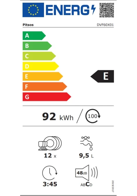 Pitsos DVF60X01 Εντοιχιζόμενο Πλυντήριο Πιάτων 60 cm