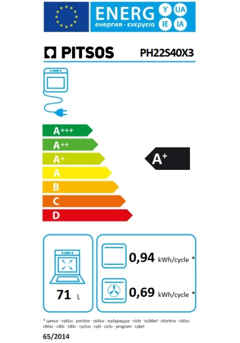 Pitsos PH22S40X3 Εντοιχιζόμενος φούρνος Άνω Πάγκου