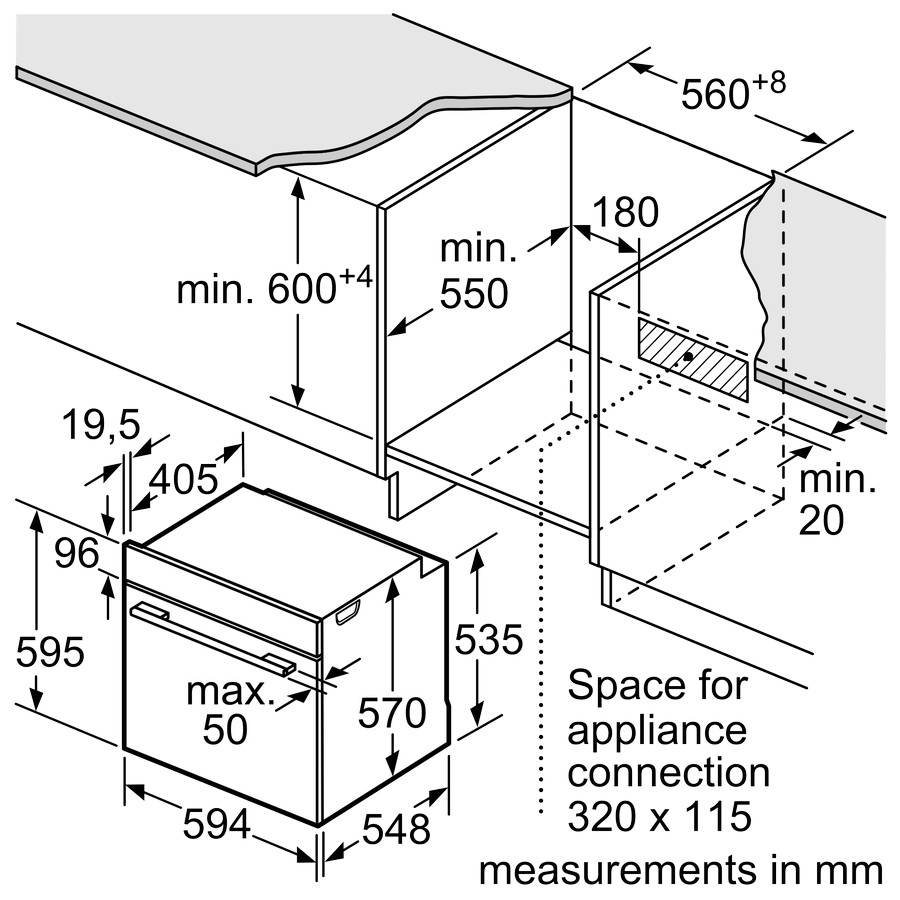 Διαστάσεις συσκευής (ΥxΠxΒ): 595 x 594 x 548 mm