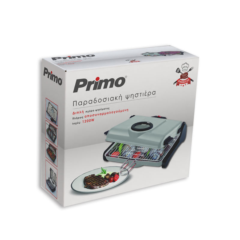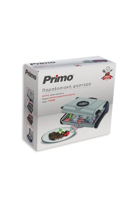Primo AB661 1200W 2πλή σχάρα 34X25εκ. Κόκκινη Παραδοσιακή Ψηστιέρα (400226)