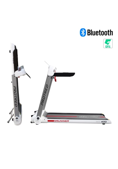 Ο Διάδρομος Γυμναστικής Protred® MR-400, με δυνατότητα πλήρους αναδίπλωσης και κονσόλα νέας γενιάς με πλήκτρα αφής και δυνατότητα ασύρματης αναπαραγωγής μουσικής, είναι ιδανικός για όσους έχουν περιορισμένο χώρο! Διαθέτει άνετο τάπητα πλάτους 46cm, μέτρηση καρδιακού παλμού με αισθητήρες χειρός και είναι συμβατός μέσω Bluetooth με τη δωρεάν εφαρμογή Gfit.