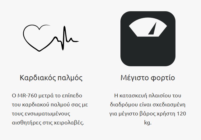 ΔιαστάσειςΟ άνετος τάπητας διαστάσεων 45x130cm σε συνδυασμό με την ποιοτική κατασκευή του MR-760 σας δίνουν τη δυνατότητα να προπονηθείτε με ασφάλεια και χωρίς περιορισμό στην κίνησή σας!
